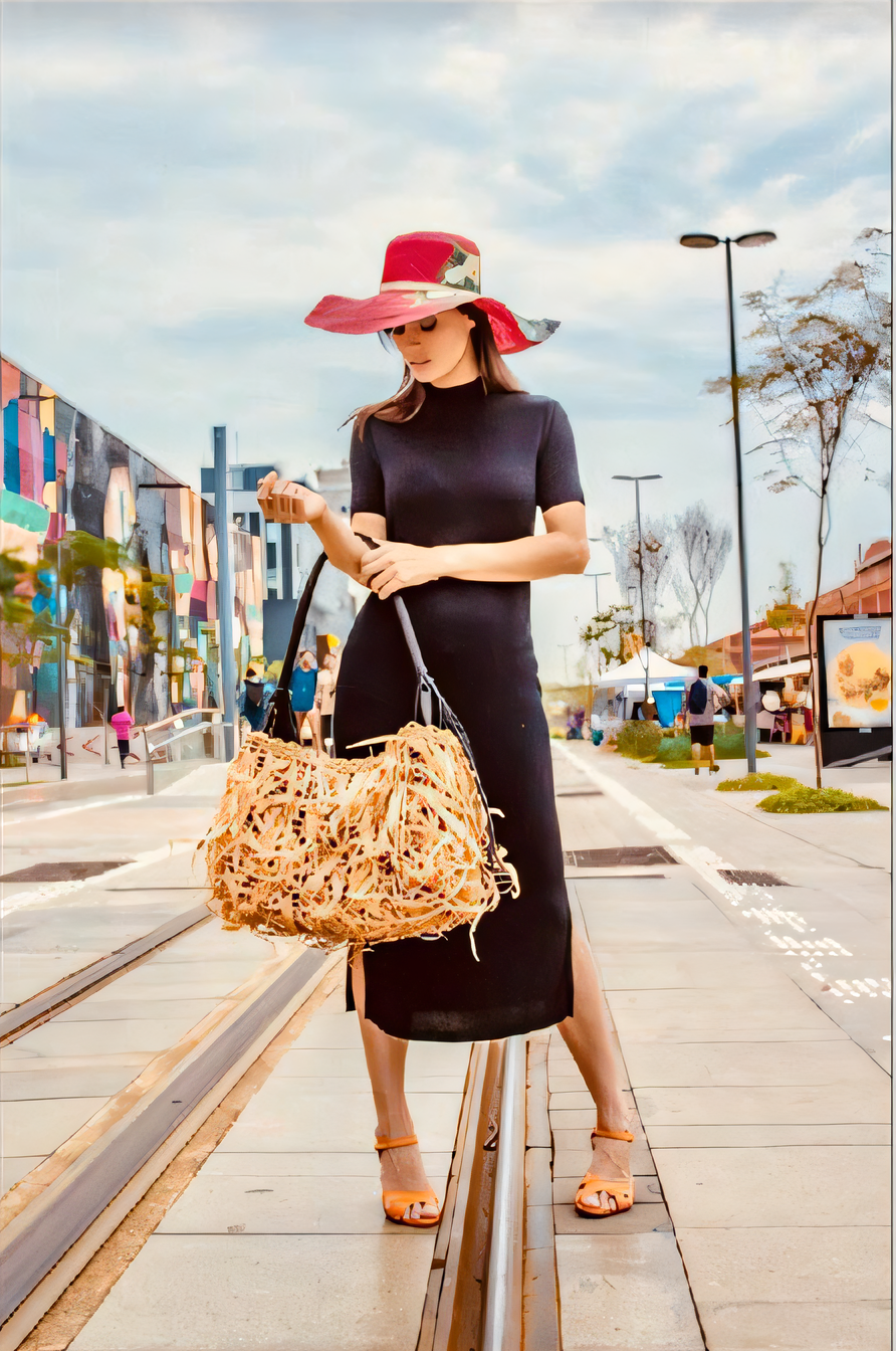 feita pelas artesãs que durante o dia trabalham na lavoura, à noite suas mãos calejadas da lida no campo se tornam artistas. a bolsa é tecida em um molde, trançada e tingida.