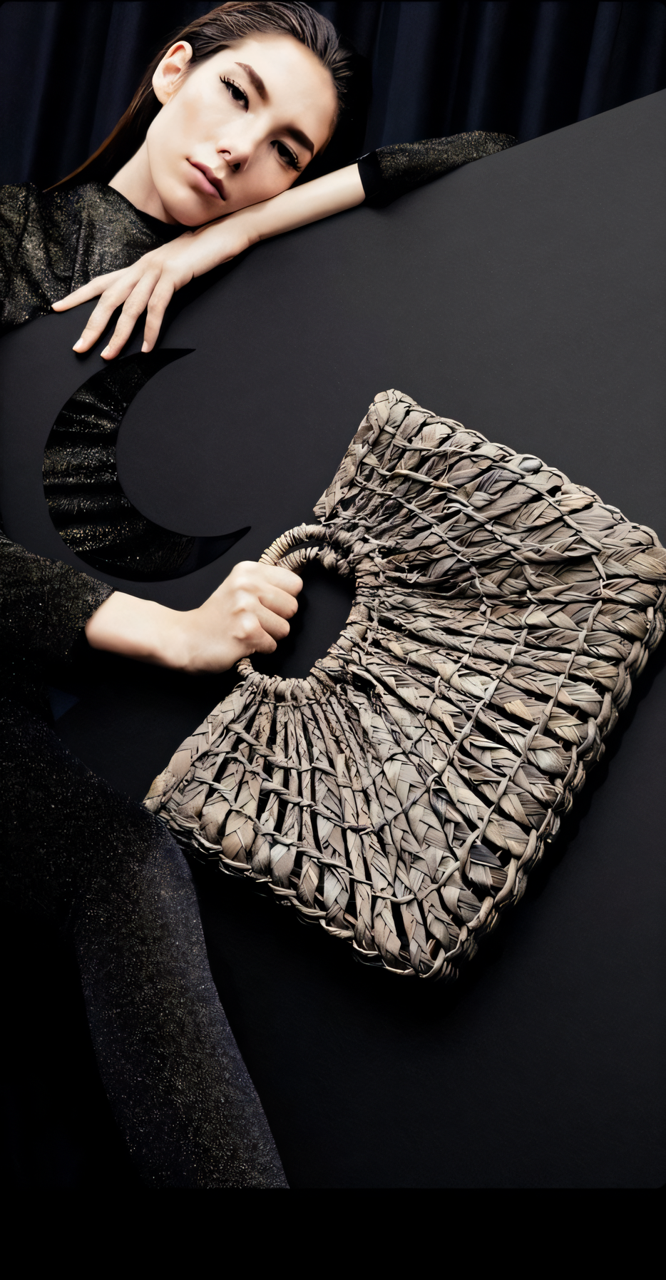 feita pelas artesãs que durante o dia trabalham na lavoura, à noite suas mãos calejadas da lida no campo se tornam artistas. a bolsa é tecida em um molde, trançada e tingida.